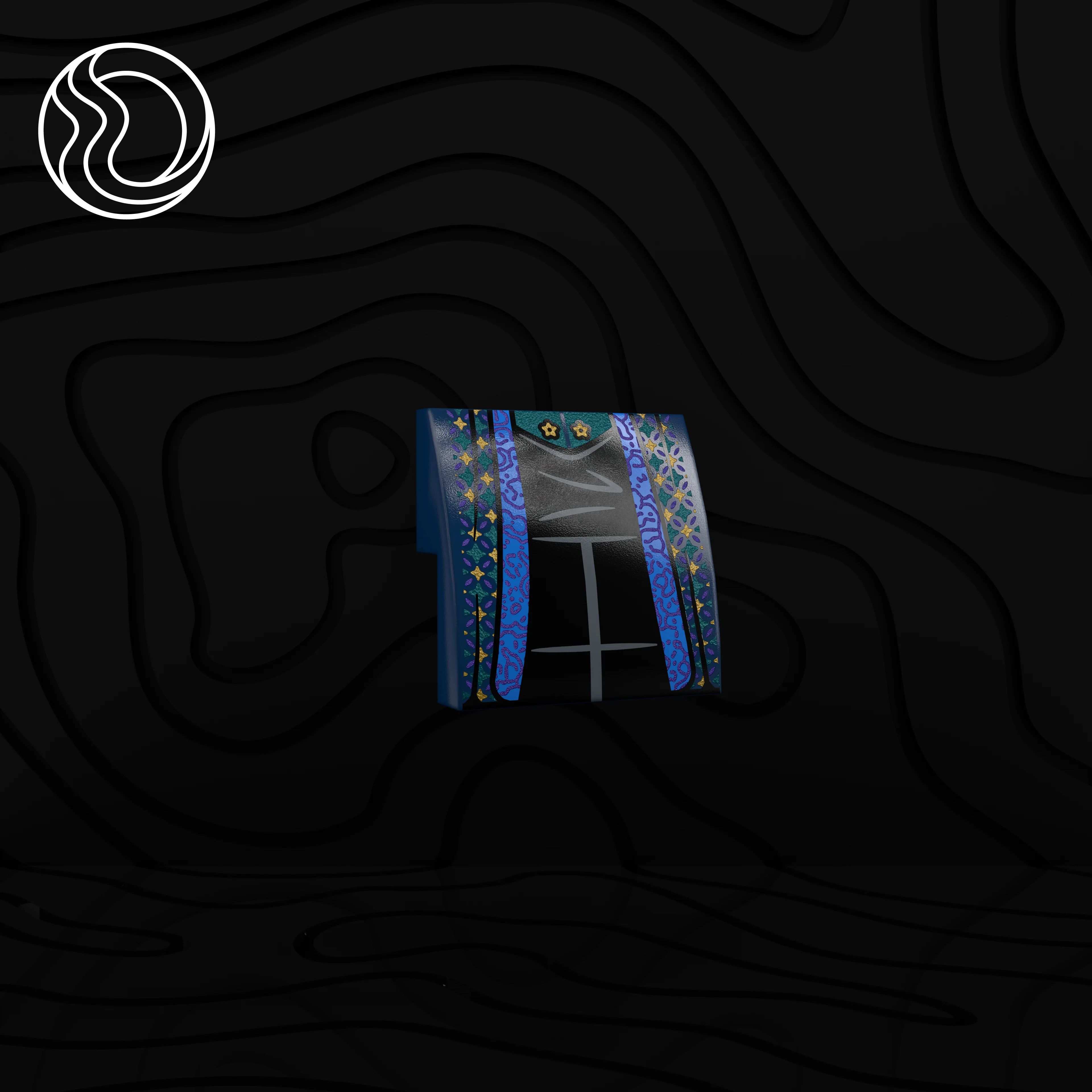 Custom hairpiece. Includes multiple metallic elements and sitting slope piece. all pad printed on official parts.